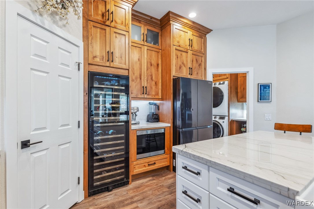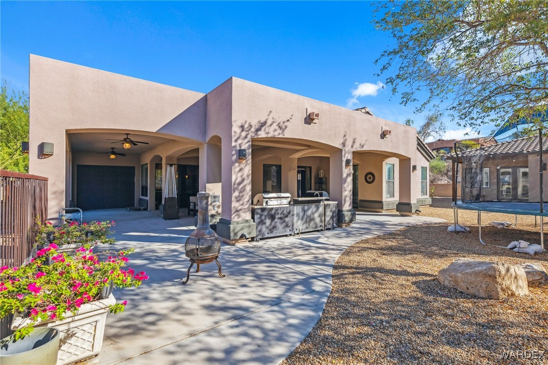 Welcome to 2838 Sidewheel Drive, an exceptional home in the sought-after gated community of Laughlin Ranch Golf Club. Located on a quiet cul-de-sac, and nearly half an acre of land this home s thoughtful design caters both comfort and entertaining. This property includes a 1,870 sq. ft. main home with 3 bedrooms and 2 bathrooms, along with a 743 sq. ft. detached casita perfect for guests or multi-generational living. The casita features its own living space, full kitchen, two bedrooms, a full bath with a tiled walk-in shower, and private laundry hookups.The main home s open-concept design is filled with natural light and features a seamless flow between the living, dining, and kitchen areas. The designer kitchen is one of the many highlights of the home, equipped with a Monogram 48" double oven and 6-burner range, custom cabinetry, an oversized 8-foot island, built-in wine fridge, and so much more. Sliding doors in the main living area lead to the backyard, creating an easy transition between indoor and outdoor spaces. The primary suite, tucked away for added privacy, includes a spacious en-suite with a garden-style soaking tub, walk-in shower, his-and-hers vanities, and a spacious walk-in closet. The additional bedrooms and guest bath are thoughtfully positioned at the front of the home, and a large laundry room adds to the functional layout.Outside, the backyard is designed for relaxation and entertaining. A heated POOL and SPA sit alongside an oversized covered patio, creating the perfect setting for gatherings or quiet evenings under the stars. The property s 40-foot boat-deep garage with passthrough access provides ample storage for recreational vehicles or desert toys. Situated in one of Bullhead City s most desirable neighborhoods, this home offers the perfect combination of luxury, practicality, and location. With its freshly painted exterior and well-maintained landscaping, it s move-in ready and waiting for its new owners.